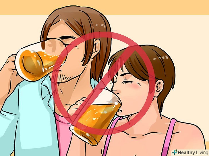 Обмежте вживання спиртних напоїв.з багатьох причин алкоголь протипоказаний всім, хто прагне скинути вагу і зробити свій живіт плоским.- Надмірне вживання алкоголю часто призводить до появи так званого "пивного живота". Алкоголь викликає виділення естрогену в кровоносну систему, що сприяє відкладенню жиру і набору ваги.[19]