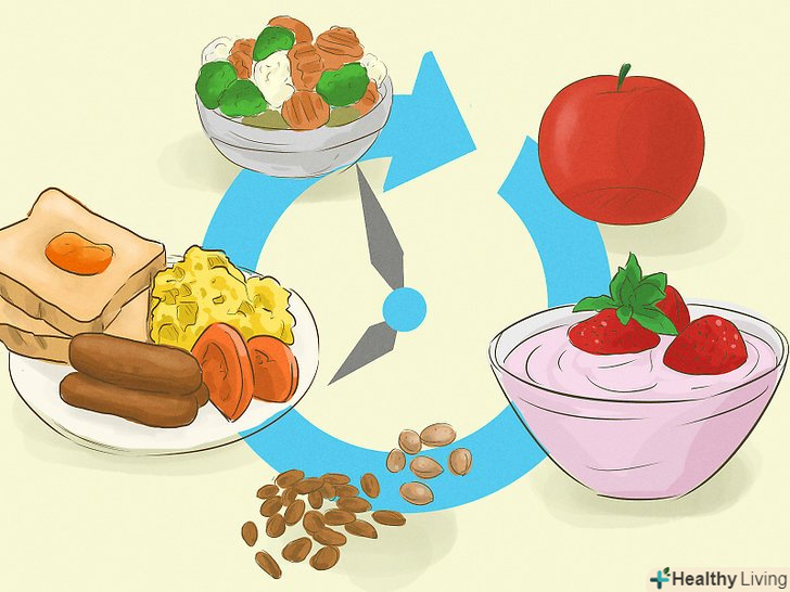 Їжте 5 разів на день.крім 3 основних невеликих прийомів їжі, перекушуйте (здоровою їжею). Ваші прийоми їжі повинні бути менше, але ви будете почувати себе більш ситим.- У цього правила є наукове обгрунтування. Коли ми їмо, наш термічний ефект їжі зростає. Високий ТЕФ прискорює наш метаболізм, знижує відчуття голоду і призводить до втрати ваги.