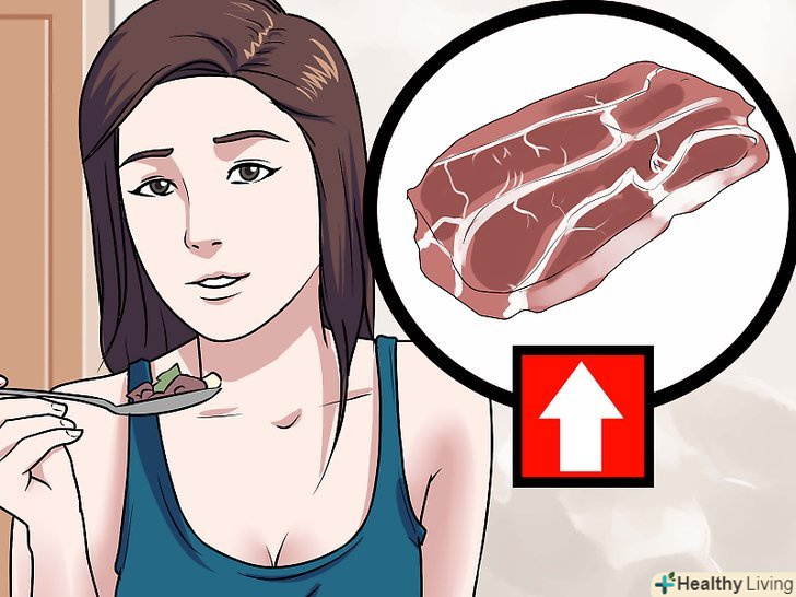 Збільште споживання білка.білок дає тілу енергію і дозволяє спалювати калорії. Більш високе споживання білка разом з низьковуглеводною дієтою допомагає тілу спалювати жир швидше в порівнянні з багатьма іншими планами харчування.[7]- Додавайте багаті білком продукти в кожен прийом їжі. Одна порція білка зазвичай становить 90-120 грамів або ½ склянки продукту.[8]