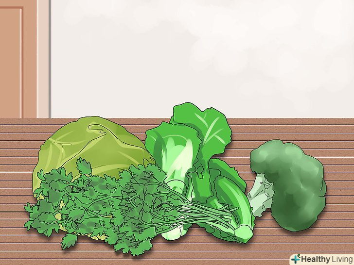 Їжте більше зелених овочів.зелені овочі насичують тіло багатьма важливими вітамінами і мінералами. Вони низькокалорійні і містять масу поживних речовин.[9]- Такі темно-листові зелені овочі, як мангольд, шпинат, листова гірчиця і листова капуста, багаті клітковиною, вітамінами A, K, C і вітамінами групи B.