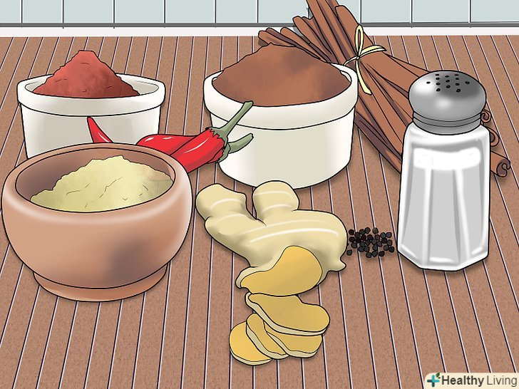 Додавайте спеції.деякі спеції можуть прискорювати метаболізм і допомагають швидше спалювати калорії. Додавайте ці спеції під час приготування їжі або вже в готові страви, щоб «розпалити вогонь травлення» і позбутися від зайвих кілограмів швидше. [11]- Кайенский перець допоможе організму швидше спалювати жир і зменшує відчуття голоду. Він може прискорювати обмін речовин, а це означає, що він допомагає спалювати більше калорій.[12]