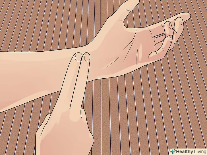 Виміряйте частоту серцевих скорочень (ЧСС).перебуваючи в стані спокою, покладіть два пальці на зап'ясті по центру так, щоб ви могли відчути свій пульс. Використовуйте таймер або годинник з секундною стрілкою, щоб засікти 15 секунд. Помножте отримане значення на чотири, щоб дізнатися ЧСС в хвилину в стані спокою. [19]- Максимальна частота серцевих скорочень повинна становити приблизно 220 мінус ваш вік. Наприклад, якщо вам 30 років, то ваша максимальна ЧСС повинна бути близько 190.