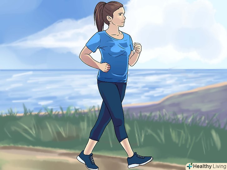 Почніть тренування з помірною і високою інтенсивністю.через один-два тижні після введення низькоінтенсивних тренувань в свій режим ви зможете почати рухатися трохи швидше.- Біг і спортивна ходьба прекрасно підходять для занять з помірною інтенсивністю. Ви також можете їздити на велосипеді на відносно рівній місцевості.