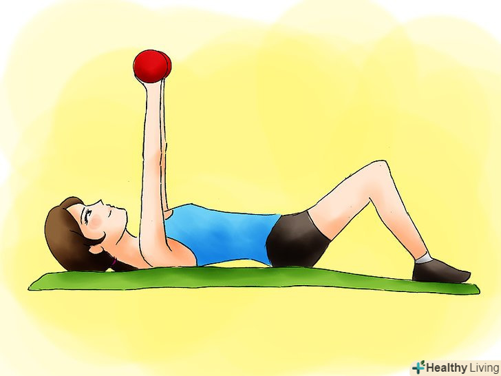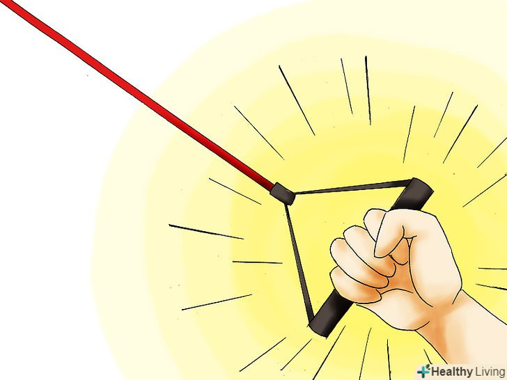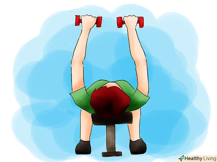 Примусьте ваш біцепс працювати.це двоголовий м'яз у верхній частині вашої руки. Почніть з вправ з вагою 1,8-2,2 кг і поступово досягайте ваги, який викличе втому м'язів через 2-3 підходи по 10 вправ.- Виконуйте 10-10-10. Do 10-10-10s.у цій вправі виконуйте підйом на біцепс долонями вгору, в бічному напрямку під кутом 45 градусів. Не робіть довгих перепочинків між підходами.