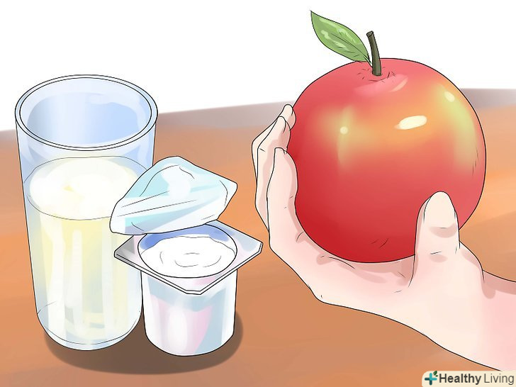 Запасіться корисною їжею.коли, наступного разу, ви підете в продуктовий магазин, купуйте фрукти, овочі, курку, індичку, рибу і цільнозерновий хліб. Кисломолочні продукти з низьким вмістом жирів, наприклад: йогурт або молоко – це відмінний спосіб урізноманітнити свій раціон.