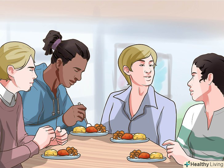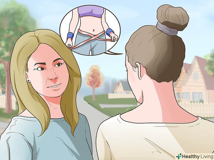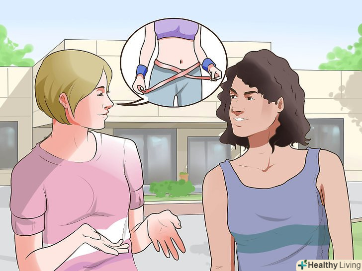 Дбайте про себе.не забувайте, що ваші мозок і тіло продовжують розвиватися. Якщо ви відмовитеся від занадто великої кількості страв, то це може нашкодити вашому майбутньому здоров'ю та інтелекту, а також знизити поточну концентрацію і самооцінку. Занадто велика увага до схуднення може привести до того, що ви станете нещасні і захворієте.[18]- Якщо вам важко прийняти себе з поточною вагою, подумайте про те, щоб поговорити про це зі своїми друзями. Ви не зобов'язані задавати питання або просити розради, просто дайте їм зрозуміти, що ваше тіло (в силу зайвих кілограмів) викликає у вас негативні емоції.