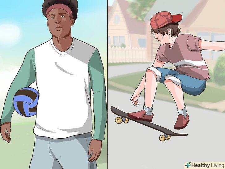 Виконуйте фізичні вправи.почніть регулярно займатися фізичними вправами, щоб прийти в гарну форму і залишатися струнким. Намагайтеся займатися як мінімум одну годину в день.[11] Подумайте про те, щоб записатися в командний вид спорту, наприклад, в команду з плавання або волейболу.- Якщо ви не схильні до суперництва або не є командним гравцем, то вам підійдуть такі поодинокі види спорту, як їзда на велосипеді, біг, скейтбординг або ходьба.