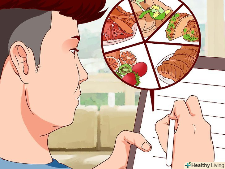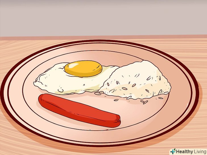 - Не пропускайте прийоми їжі і не обмежуйте порції занадто сильно. Пропускаючи прийоми їжі, ви будете позбавляти організм важливих поживних речовин. Ви будете відчувати голод, через що будете переїдати або занадто часто перекушувати протягом дня.[6]