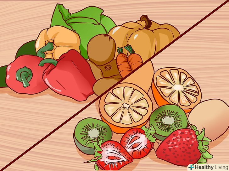 З'їдайте 5-9 порцій фруктів щодня.крім білка важливо також їсти фрукти-вони сприяють схудненню.- У фруктах і овочах мало калорій і багато клітковини, вітамінів, мінералів і антиоксидантів. З'їдайте 80 грамів фруктів, 150 грамів овочів або 200 грамів салатної зелені.[12][13]