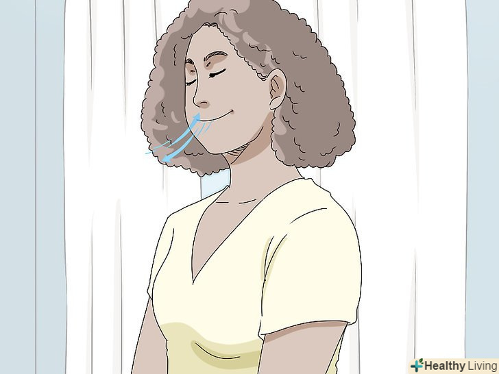 Займіться вправами для глибокого дихання.- Вдихайте і видихайте з інтервалом в 10 секунд. Сядьте в комфортну позицію. Вдихайте 10 секунд, а потім видихайте 10 секунд. Дихайте таким чином від 2 до 5 хвилин.