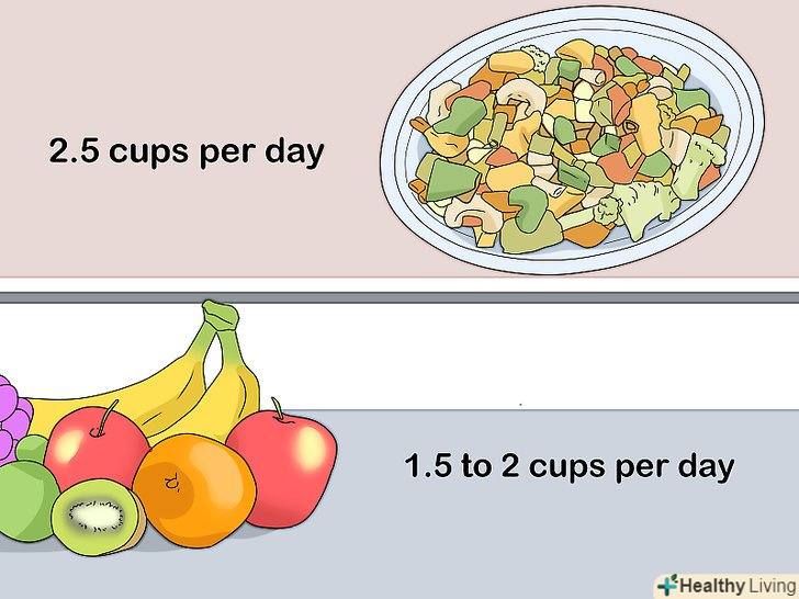Плануйте ваші прийоми їжі, відштовхуючись від кількості фруктів і овочів.- Жінка від 19 до 50 повинна вживати як мінімум 2,5 чашки овочів в день.