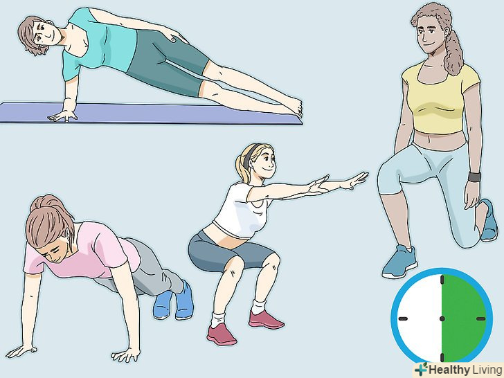 Виконуйте вправи з власною вагою перед тим, як перейти до традиційних кранчів.виконуйте планку, планку на сторону, віджимання, присідання і випади через день.- Намагайтеся займатися по 30 хвилин через день.