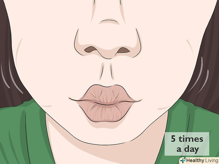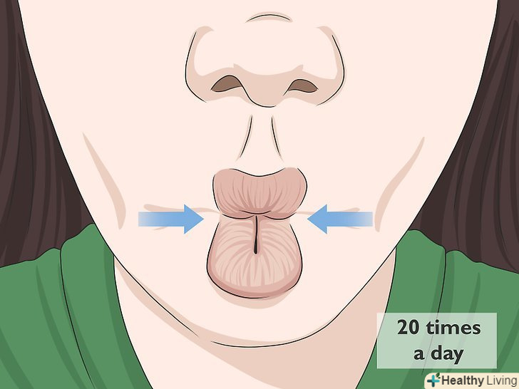 Втягуйте щоки, як риба. втягніть щоки всередину рота, потримайте їх в такому положенні близько 3 секунд, потім розслабте. [2]- Повторюйте дану вправу 20 разів на день.