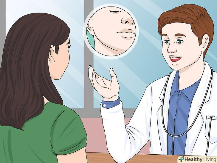 Попросіть лікаря перевірити, чи не пов'язана повнота щік з будь-якими захворюваннями. у деяких випадках повнота щік може свідчити про хворобу, яка потребує лікування. Якщо ви відновили нормальну вагу, а щоки залишилися занадто круглими незважаючи на всі ваші старання, запишіться на прийом до лікаря. [12]- Наприклад, лікар може перевірити, чи немає у вас епідемічного паротиту (свинки), який викликає припухлість щік. [13]