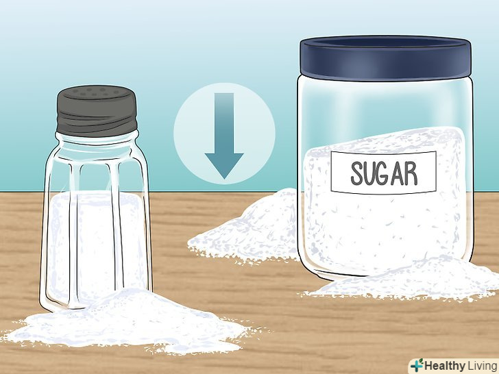 Їжте менше солі та цукру. вживання занадто великої кількості солі і рафінованого цукру сприяє скупченню рідини в організмі. Як і недостатнє споживання води, це може викликати припухлість обличчя і щік через затримку рідини в організмі. Хоча ви не можете повністю відмовитися від солі і цукру, постарайтеся скоротити кількість солоної і солодкої їжі в своєму раціоні і віддавайте перевагу продуктам з низьким вмістом солі і цукру. [6]Замість солоних м'ясних продуктів, таких як шинка або ковбаса,Їжте нежирне м'ясо, наприклад курятину без шкіри або фарш з індички.