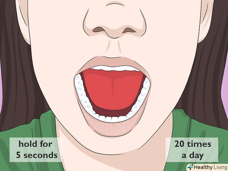 Широко відкрийте рот, потримайте в такому положенні, потім розслабтеся. якомога ширше відкрийте рот, як ніби ви збираєтеся відкусити великий шматок чого-небудь. Потримайте рот в такому положенні 5 секунд, потім закрийте його і розслабтеся. [3]- Повторюйте дану вправу 20 разів на день.