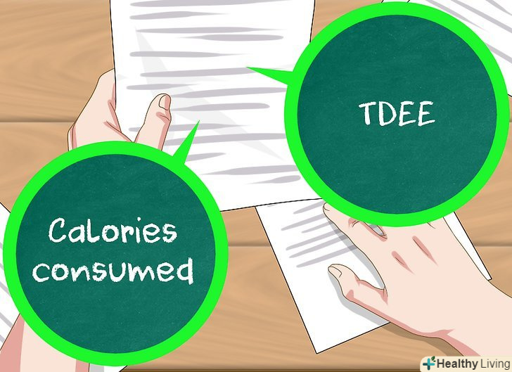 Ведіть щоденник харчування. щоденник харчування допомагає вести щоденний підрахунок споживаних калорій. Завдяки цьому ви дізнаєтеся, скільки калорій потрібно споживати в день, щоб скинути вагу. [5]- Не обманюйте себе. Неточний щоденник харчування марний, тому потрібно вказувати кожну цукерку та інші ласощі.