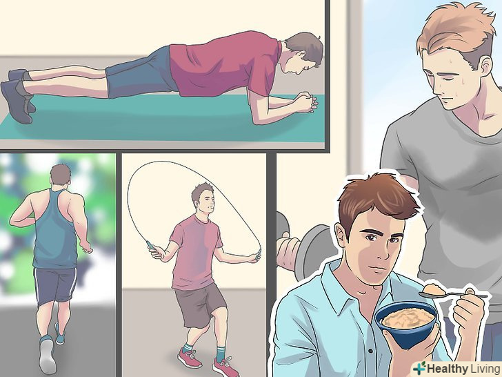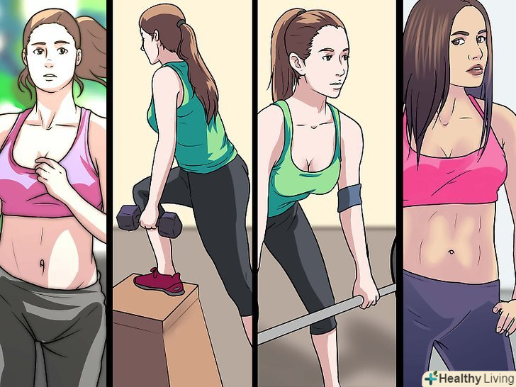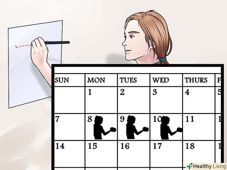 Ставте перед собою реальні цілі. врахуйте, що іноді ви не зможете готувати здорову їжу або дотримуватися графіка тренувань. Це цілком нормально. Поставте собі за мету змінити свій спосіб життя, але не настільки, щоб ви не змогли підтримувати ці зміни протягом тривалого часу. Наприклад, якщо ви не займалися бігом раніше, не намагайтеся відразу ж щодня пробігати півгодинний крос. Почніть з швидкої ходьби і подивіться, чи зможете ви поступово перейти до бігу. [8]