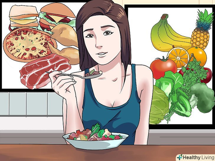 Контролюйте розмір порцій. можна продовжувати їсти те, що Вам подобається, але при цьому Змінити розмір порцій. Наприклад, можна зменшити кількість жирної і висококалорійної їжі і їсти більше овочів. Іноді для втамування голоду досить з'їсти не всю порцію, а лише кілька шматочків. [16]
