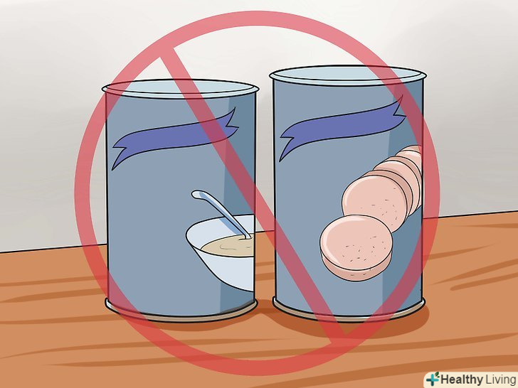 Зменшіть споживання солі.вживання натрію (солі) у великій кількості може призводити до запасання рідини в організмі, а відповідно і до здуття живота.[3] намагайтеся не вживати більше 2000-2500 мг солі в день-завдяки цьому налагодиться обмін речовин, і в організмі не буде накопичуватися рідина.[4]- Не їжте консервовану або заморожену їжу, оскільки найчастіше консервантом в цих продуктах є сіль. Намагайтеся купувати свіже м'ясо, а не ковбасні вироби, в яких також багато солі.