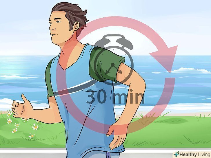 Включіть в свій розклад виконання аеробних вправ.Аеробна активність (кардиоупражнения) дозволяє спалити найбільшу кількість калорій в одиницю часу. Регулярне виконання кардиоупражнений допоможе вам у вашій боротьбі з надмірною вагою.[21]- Рекомендується витрачати, принаймні, 150 хвилин на тиждень на аеробні вправи помірної інтенсивності. Щоб поліпшити результати, збільште тривалість занять або інтенсивність виконуваних вправ (при цьому спалюється більше калорій в хвилину).[22]