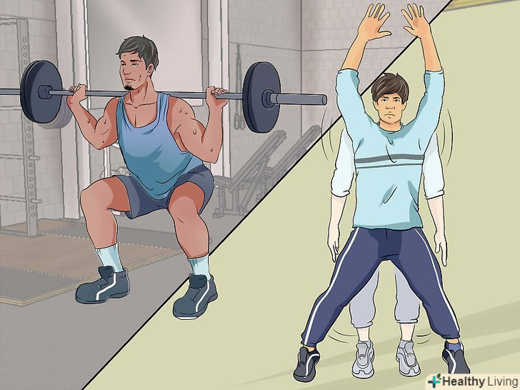 Займіться силовими тренуваннями.хоча аеробні вправи спалюють більшу кількість калорій, силовий тренінг теж не буде зайвим на шляху до ідеальної ваги.[23] займайтеся силовими тренуваннями 1-3 дні в тиждень.[24]- Силові тренування має вирішальне значення для контролю ваги. Цей тип вправ допомагає нарощувати м'язову масу, що веде до збільшення швидкості метаболізму і в кінцевому підсумку до збільшення кількості калорій, спалюваних протягом дня. Активна м'язова тканина споживає калорій протягом усього дня незалежно від того, працюєте ви чи ні.[25]