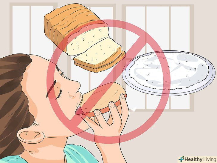 Обмежте споживання вуглеводів.у багатьох дослідженнях було показано, що найбільш швидко скинути вагу дозволяють дієти з низьким вмістом вуглеводів. Крім того, такі дієти зазвичай сприяють спалюванню в основному жирової, а не м'язової маси.[9]- При низкоуглеводной дієті слід звести до мінімуму споживання багатих вуглеводами продуктів, які ви їсте кожен день.