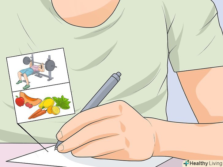 Заведіть щоденник.щоденник допомагає дотримуватися дієти і програму фізичних вправ. Заносите в нього різні фактори, які впливають на ваш стан, і стежте за прогресом. Можна використовувати як паперовий блокнот і ручку, так і спеціальний додаток для смартфона.- Записуйте в щоденник все, що ви з'їли. Таким чином ви не тільки зможете стежити за своїм харчуванням, але і в разі невдачі дізнаєтеся, що робили не так, і чи не слід ще більше знизити кількість споживаних калорій.[3]