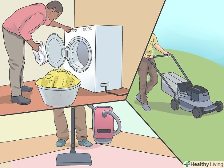 Збільште рівень повсякденної фізичної активності.це ті види фізичної активності, якими ви займаєтеся в повсякденному житті. Хоча такі навантаження не дозволяють спалити багато калорій самі по собі, якщо додати їх до тренувань, то вони помітно збільшать загальну кількість спалюваних калорій.[23]- Повсякденна фізична активність включає в себе домашні справи, роботу в саду, ходьбу пішки, підйом по сходах.
