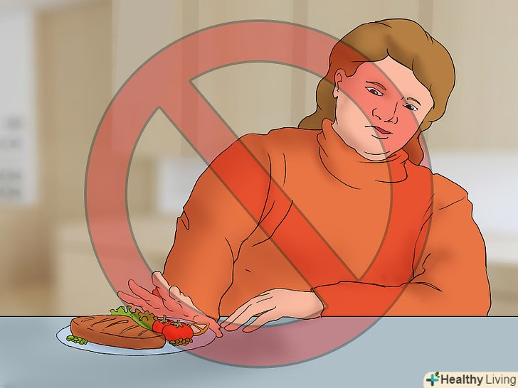 Не голодуйте.коли калорійність раціону сильно обмежена, організм переходить в режим збереження енергії, оскільки вважає, що настали голодні часи. А це означає, що ви можете набрати вагу. Те, що ви їсте, важливіше, скільки ви їсте. Свіжа їжа дозволить вам насититися малою кількістю калорій. Слідкуйте за своїми відчуттями під час їжі. Як тільки відчуєте, що вже не голодні, але ще не наїлися, перестаньте їсти.[18]