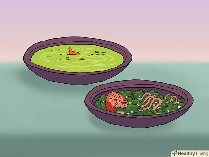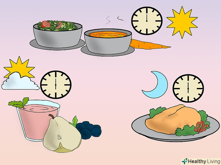 Не наїдайтеся на ніч.намагайтеся з'їсти дві третини денного раціону до вечері.[20] вечеряти слід чимось легким-наприклад, супом або салатом без додавання жирного білка і вуглеводів. Легка вечеря допоможе вам краще спати, а це дуже важливо, якщо ви худнете.