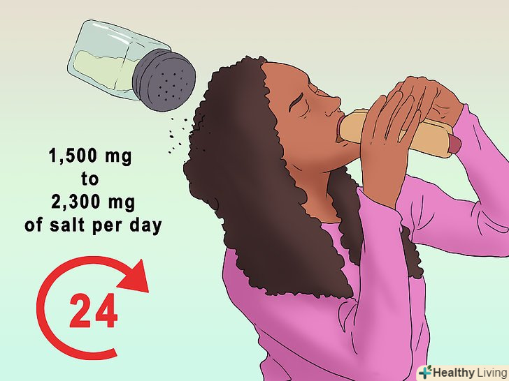 Їжте менше солі. дорослій людині слід з'їдати не більше 2300 міліграмів солі в день (і всього 1500 міліграмів у віці старше 51 року). Надлишок солі може підвищувати тиск, що часто стає причиною захворювань серцево-судинної системи і серцевого нападу.[5] сіль також викликає набряки, через що людина виглядає крупніше, ніж він є насправді.