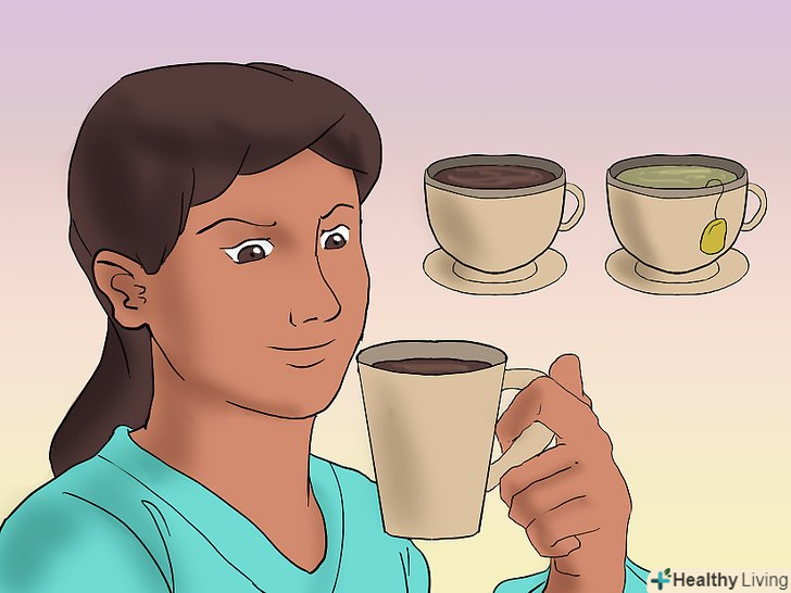 Пийте чорну каву або зелений чай.при помірному вживанні ці напої дають енергію і прискорюють метаболізм. Не додавайте в напої молоко або цукор! І не пийте занадто багато, оскільки надмірна кількість кофеїну може викликати проблеми зі здоров'ям. Намагайтеся пити 2-4 чашки зеленого чаю або чаю улун щодня або 1-4 чашки чорної кави (все залежить від міцності кави).- У чашці кави може бути 50-300 міліграмів кофеїну. Намагайтеся вживати не більше 400 міліграмів на день. Підліткам слід обмежуватися 100 міліграмами.[12]