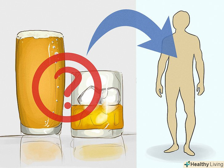Навчіться приблизно визначати кількість калорій, що містяться в алкогольних напоях.якщо ви хочете позбутися від пивного живота, важливо почати сприймати пиво як джерело зайвих калорій. Алкоголь полегшує процес спілкування, але при цьому містить велику кількість порожніх калорій, особливо якщо людина випиває занадто багато. Навчіться рахувати калорії в пиві і в інших напоях, і ви зможете привести себе в форму.- У пиві зазвичай міститься близько 100-300 калорій на банку або пляшку об'ємом 0,5 літра (точна кількість залежить від типу і бренду пива). У темному пиві (стаут, портер), а також в більш міцному пиві міститься набагато більше калорій, ніж у світлому. У нових видах пива може міститися всього 50-60 калорій, але і алкоголю в них буде менше, тобто для того, щоб відчути ефект, потрібно буде випити більше, а це нівелює різницю в калоріях. У вині міститься приблизно та ж кількість алкоголю, що і в пиві: 160-200 на порцію.