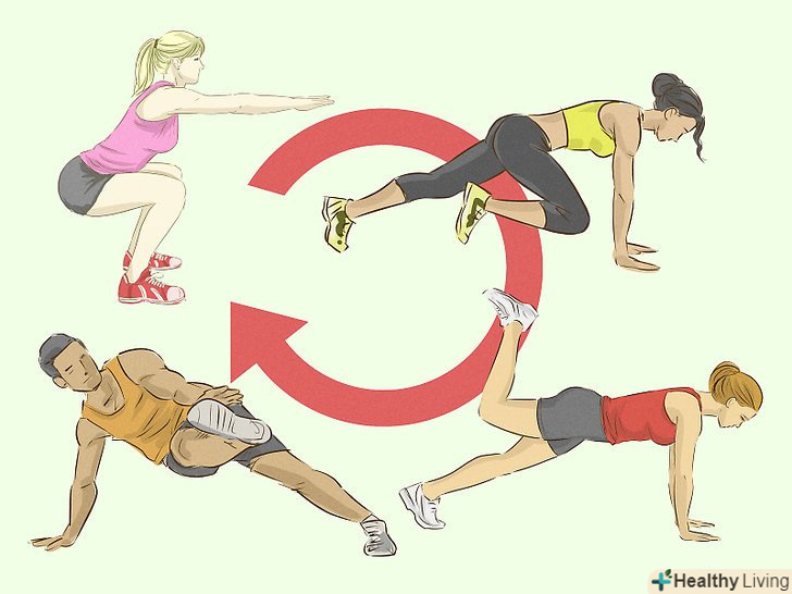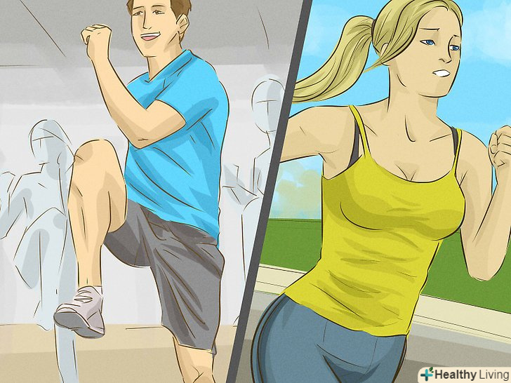 Займайтеся у відповідному вам темпі.не варто відразу ж купувати дорогий абонемент в спортзал і з завзяттям займатися з самого першого дня. При достатній мірі мотивованості ви зможете знайти вправи, які будуть доставляти вам задоволення, а потім перейти до більш серйозних навантажень. Почніть займатися спортом з наступних вправ:- Ходьба. Купіть крокомір, щоб рахувати кількість кроків, пройдених за день. Спробуйте пройти щонайменше 10 000 кроків, і це набагато простіше, ніж ви думаєте. Замість того, щоб проїхати пару кілометрів до магазину, вирушайте туди пішки або просто виходьте з дому кілька разів на день на невеликі прогулянки. Ідіть трохи швидше, ніж ви зазвичай ходите, щоб спітніти.