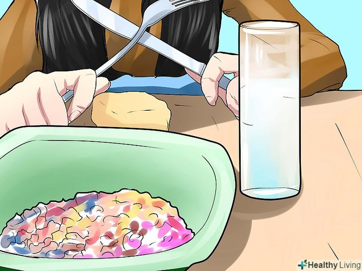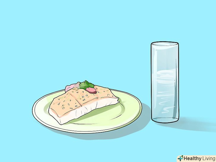 Використовуйте тарілки поменше і склянки вище.через те, як мозок зчитує візуальну інформацію, розмір порції допомагає визначити, як багато вам потрібно з'їсти, щоб насититися.[9]- Якщо розмір тарілки набагато більше, ніж кількість їжі на ній, у вас виникає відчуття, що цієї їжі недостатньо. У маленькій тарілці у вас буде відчуття, що їжі більш ніж достатньо.