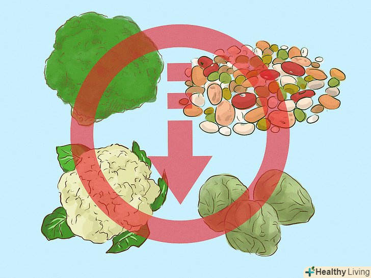 Зменшіть споживання продуктів з високим вмістом клітковини.багато продуктів з високим вмістом клітковини, таких як брокколі, квасоля, брюссельська та цвітна капуста, викликають гази та здуття живота. Виключіть їх зі свого раціону протягом цього тижня. Після цього часу поступово знову вводите їх в раціон. Ймовірно, ви виявите, що деякі продукти приносять шлунку більший дискомфорт, ніж інші, — відрегулюйте свій раціон відповідно, щоб і клітковину отримувати, і зберегти свій живіт плоским.- Вживайте боби і овочі сімейства хрестоцвітних. У них міститься фермент, який руйнує складні цукру, тому вони легше перетравлюються, при цьому знижується вироблення газу в організмі.