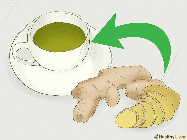 Додайте в свій раціон імбир.імбир заспокоює шлунково-кишковий тракт і може допомогти зменшити здуття живота. Додайте свіжий тертий імбир в зелений чай або зваріть нарізані шматочки кореня і приготуйте імбирний чай.