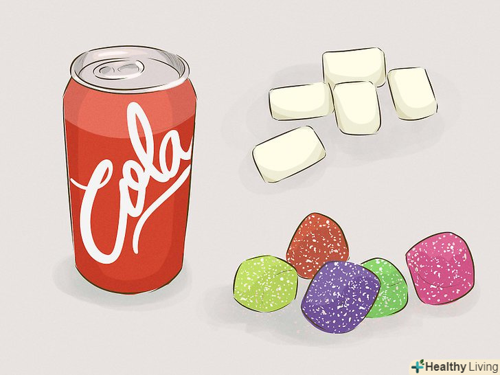 Не вживайте сорбіт.сорбіт-це штучний підсолоджувач, що міститься в деяких дієтичних газованих напоях. Хоча він додає солодкість і не містить багато калорій, проблема в тому, що організму складно переварити цю речовину. Воно міститься не тільки в газованих напоях, але і в йогуртах, низькокалорійних продуктах, жувальній гумці і льодяниках.