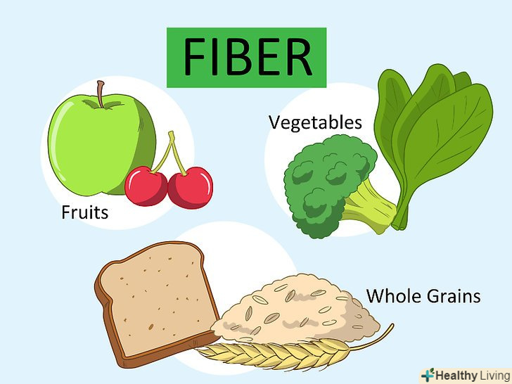 Наповніть свій день клітковиною.розчинна клітковина, яка міститься в фруктах, овочах і цільних зернах, знижує рівень інсуліну в організмі і призводить до видалення жиру. [4] вживаючи з їжею велику кількість клітковини, ви швидше насититеся, тому висококалорійна їжа не буде виглядати для вас настільки спокусливою.- Їжте цільні фрукти та овочі. Свіжі цілісні фрукти і овочі, наприклад яблука, вишні, апельсини, брокколі, шпинат, капуста і солодка картопля містять велику кількість клітковини.