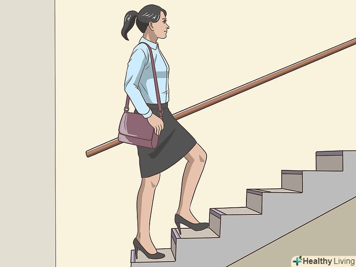 Знайдіть творчі способи підвищення своєї фізичної активності.ми спалюємо калорії протягом дня не тільки коли тренуємося. Загальна фізична активність активність може мати величезне значення для процесу повсякденного спалювання калорій. Спробуйте дотримуватися цих порад, щоб бути більш активними, особливо якщо у вас сидяча робота:- Користуйтеся сходами. Це класична порада, але вона дійсно працює! Замість того, щоб користуватися ліфтом або ескалатором, піднімайтеся по сходах. Коли ви залишаєте будівлю, спускайтеся по сходах.