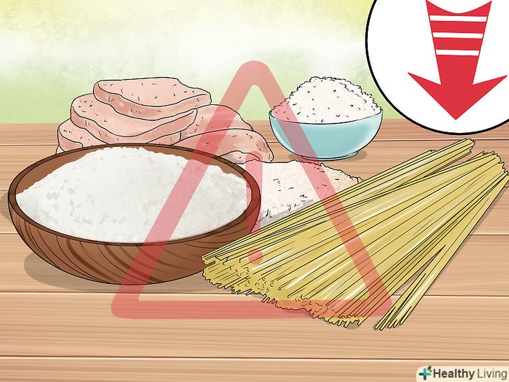 Обмежте вживання зернових і крохмалистих продуктів.оскільки організм багатьох жінок з СПКЯ також інсулінорезистентний, дуже важливо регулювати вживання вуглеводів. Не рекомендується переходити на низьковуглеводну дієту, замість цього краще вживати в їжу помірну кількість цільних злаків. Спробуйте вживати близько 3 порцій цільних злаків в день.[3]- Одна порція цільних злаків становить приблизно 30грамів. Наприклад, 1 скибочка цільнозернового хліба важить близько 30 грамів, тобто це і є 1 порція.