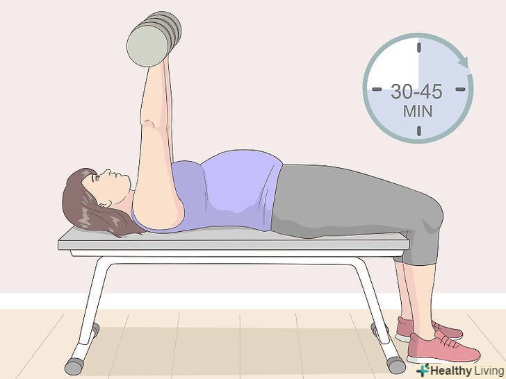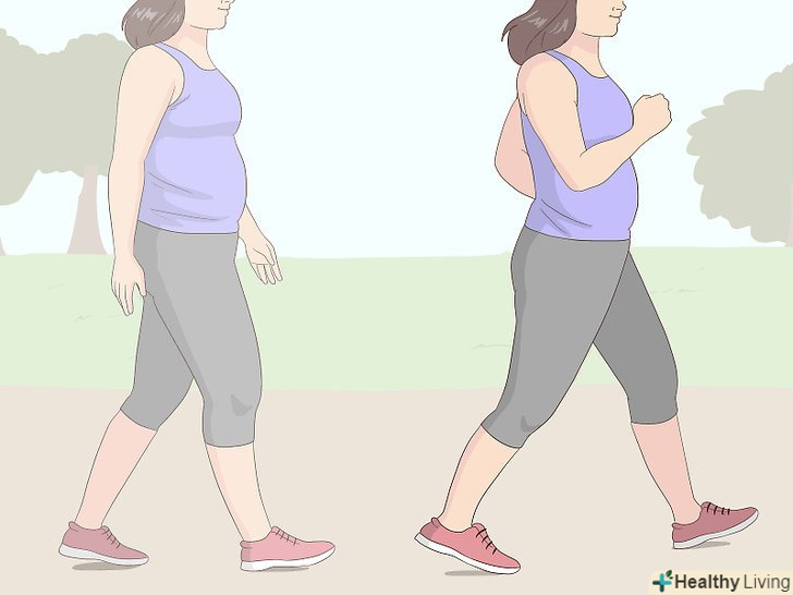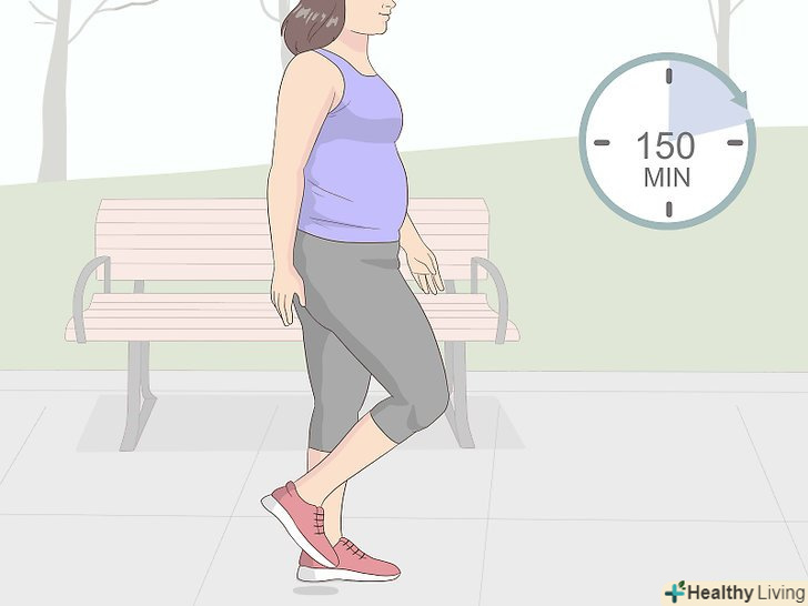 Займайтеся фізичними вправамиХоча б 150 хвилин на тиждень.це мінімальний рекомендований час для того, щоб підтримати здоров'я, хоча чим більше буде фізичних навантажень, тим краще. Постарайтеся займатися спортом щонайменше 30 хвилин більшу частину днів тижня. Виберіть те, що Вам подобається, щоб не припиняти тренування.[9]- Наприклад, можна гуляти під час обідньої перерви або після вечері, відвідувати заняття аеробікою або на велотренажерах, або просто танцювати в своїй кімнаті під улюблену музику.