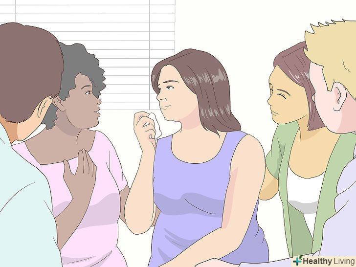 Запишіться в групу психологічної підтримки, щоб отримати допомогу з боку інших людей.якщо вас будуть оточувати однодумці, вам легше буде зберегти мотивацію і досягти поставлених цілей. Пошукайте відповідну групу підтримки для тих, що худнуть в інтернеті або в своїй місцевості.[14]- Існують як платні, так і безкоштовні групи підтримки для тих, хто прагне схуднути.