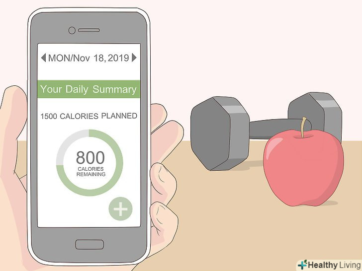 Визначте свою потребу в калоріяхІ розрахуйте, на скільки потрібно скоротити денну норму, щоб скинути вагу.підрахунок калорій є ефективним способом обмежити споживання їжі і тим самим скинути вагу. Денна кількість калорій можна розрахувати самостійно або звернутися за допомогою до лікаря. Постарайтеся зменшити денну норму на 500-1000 калорій за допомогою дієти і фізичних вправ. Записуйте все що ви їсте і п'єте в щоденник харчування або додаток для підрахунку калорій.[4]- Для жінок здорова кількість зазвичай становить 1200-1500 калорій на день, а для чоловіків — 1500-1800 калорій.