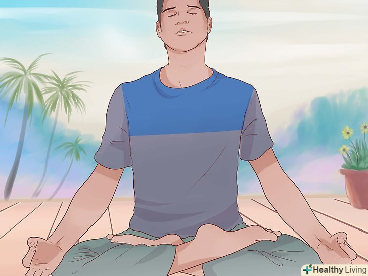 Займайтеся вдома йогою.в інтернеті можна знайти безліч тренувань з йоги, яким ви можете слідувати. Всі ці програми, як правило, супроводжуються відео, де демонструється, як слід виконувати ту чи іншу позу, і як правильно дихати.[4][5]- Пошукайте програми тренувань з йоги для новачків, якщо ви ніколи раніше не займалися йогою. Почніть з однієї години практики щодня. Ви можете займатися йогою як вдома, так і на свіжому повітрі, якщо це можливо. Згодом ви звикнете займатися йогою кожен день.