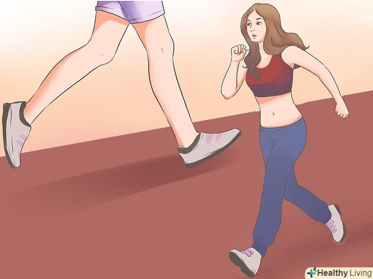 Спробуйте інтервальні тренування.інтервальні тренування - це такі тренування, коли використовуються короткі проміжки інтенсивної активності, за якими слідують довгі проміжки з вправами середньої або малої інтенсивності. Вчені, провівши кілька досліджень, з'ясували, що люди, що займаються інтервальними тренуваннями, закінчують з тренуваннями швидше і спалюють більше калорій, ніж ті, хто займається з середньою інтенсивністю протягом всього тренування.[7]- Прикладом інтервального тренування може бути наступне: під час бігу по біговій доріжці стадіону біжіть 1 коло так швидко як тільки зможете, потім біжіть підтюпцем на невеликій швидкості. Через кожні чотири кола відпочивайте. Відчуйте і полюбите спалювання своєї зайвої ваги.
