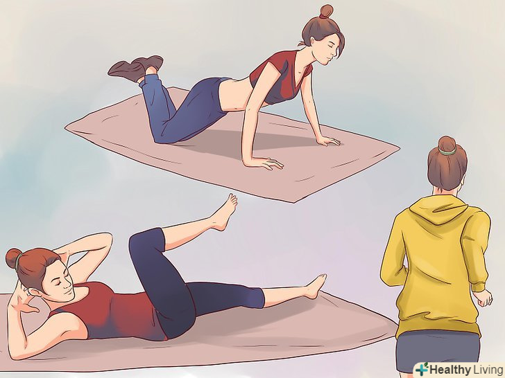 Використовуйте тренажери для зміцнення серцево-судинної системи.якщо у вас немає такого тренажера вдома, розгляньте варіант відвідування тренажерного залу. Випробуйте наступні тренажери для зміцнення серцево-судинної системи і виберіть той, який вам більше підходить:- Бігова доріжка. Насправді, біг на біговій доріжці трохи гірше, ніж справжній біг, але це все ще краще, ніж нічого. Спробуйте знайти хорошу, з швидкою швидкістю, яка змусить вас попотіти.