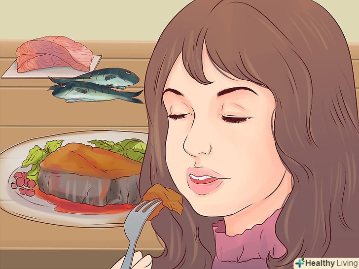 Їжте чистий білок.у яловичині міститься 98 % білка і тільки 2% жиру. Куряча грудка без шкіри, соєві продукти, багато видів риб (в тому числі сьомга) також багаті білком.