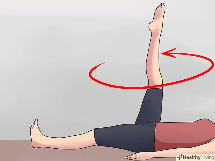 - Стегна повинні весь час перебувати на килимку. Потім, вдихніть і рухайте ногою за годинниковою стрілкою. Як тільки ви виконали п'ять кіл, змініть напрямок руху.